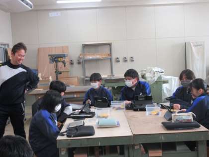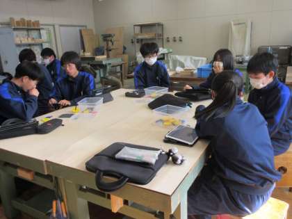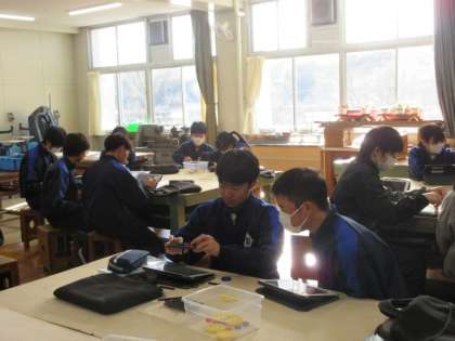 3つの歯車の組み合わせを考えています。タブレットと模型を使って考えていました。