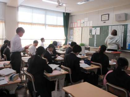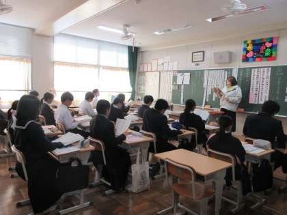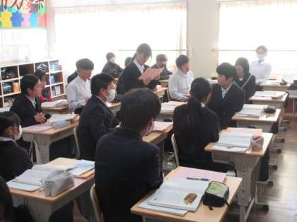 教材文から特徴的な表現を探して、発表しています。どうしてその表現を作者が使ったのかを考えていました。