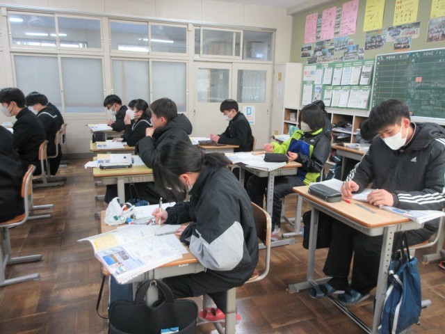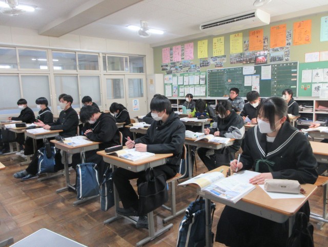 地球環境問題や国際社会の取組について学習しています。最近のニュースと絡めて、先生と会話をしながら学習していました。