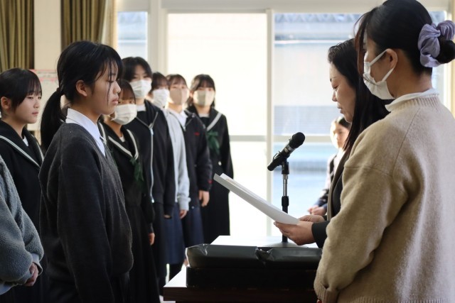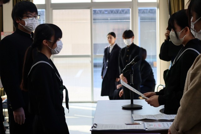 全校集会でたくさんの生徒が表彰されました。歌舞伎保存会の会長様より地域文化貢献表彰、文詩集「ひまわり」、書き初め選抜展、子ども和紙作品展などの表彰の他、小原地区の小中学校で取り組んでいる「おばらすこやかウィーク」で生活改善を行った生徒へ保健委員会から賞状が渡されました。