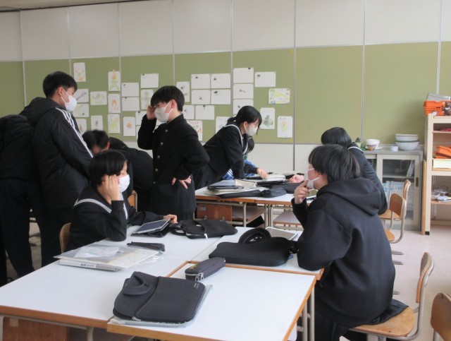 後輩へのメッセージをアニメーションで表しています。動きを確認したり、イラストや文字を加えてみたり、相談しながら調節していました。