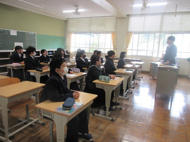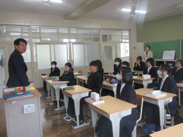 数学の授業でオリエンテーションをしています。先生に積極的に質問していました。