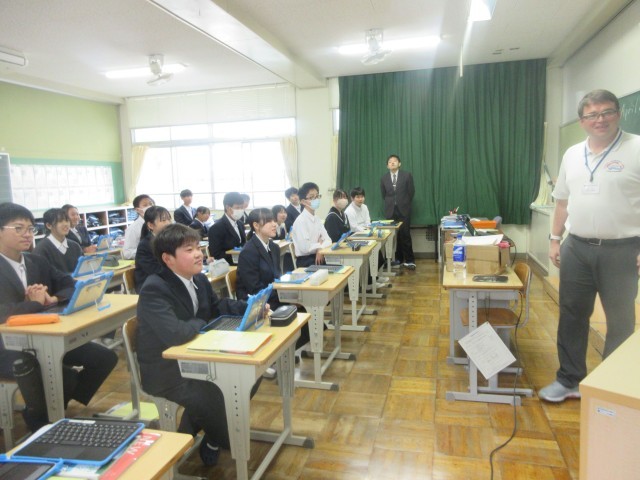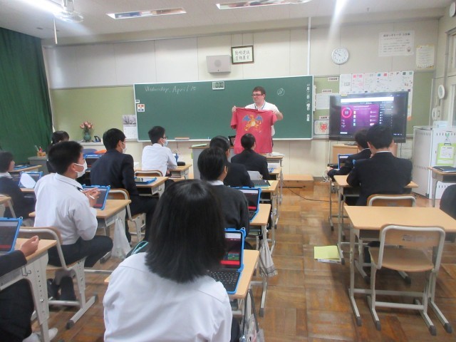 今年度のALTの先生と初めて授業を行いました。先生の自己紹介が楽しく、興味をもって話を聞いていました。