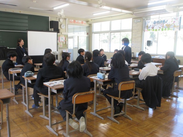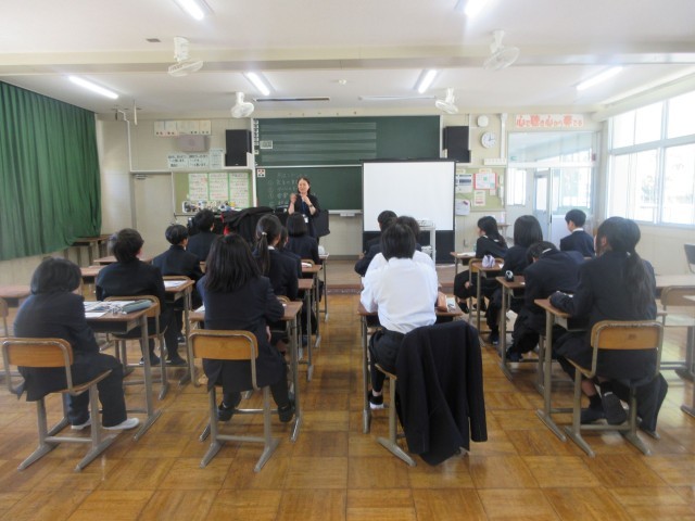 音楽の授業でオリエンテーションを行っています。好きな音楽や趣味について自己紹介をしていました。