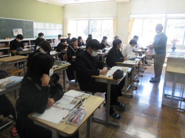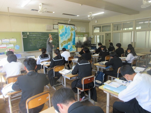 歴史分野のまとめをしています。3年生になり、学習内容を理解しようと話に集中したり、ノートにまとめたりして、これまでよりさらに真剣に授業に参加しています。