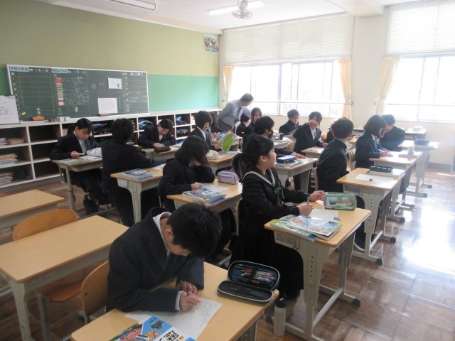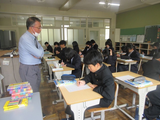 社会の授業のオリエンテーションです。興味のあるニュース、小原のイメージなど、社会科に関連した質問に答えていました。