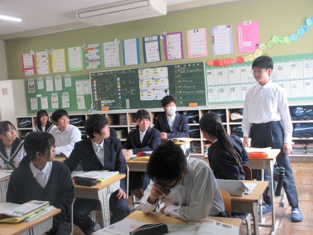 「マーライオン」に関する教材文を読んで、読み取ったことを発表しています。