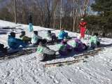 午後のスキー実習は、午前よりもペースが上がり、どちらの班の子も楽しそうに滑り降...