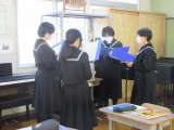 卒業式で歌う歌のパート練習をし、合唱しています。難しい伴奏を弾いているクラスメー...