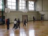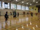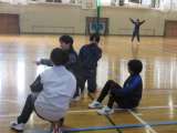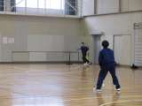 いろいろなチームとバドミントンで対戦しています。鋭いスマッシュを打ったり、コート...