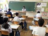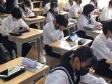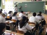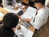 英語科の研究授業を行いました。英文を読み、グループで内容をイラストにし、説明し合...