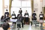 全校集会で、室長と委員長の任命、表彰披露、生徒会からの連絡などを行いました。
