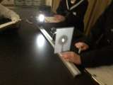 レンズを通した光がどのように進むのかを、実験装置を使って確かめました。