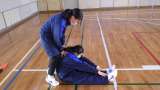 凍結によりボコボコになって使えなかったコートを整備しています。