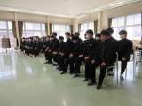 卒業証書授与の動きを練習しています。座っている姿も凛々しい3年生です。