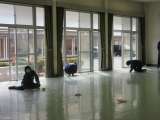 3年間過ごした学校をきれいにしようと、3年生が顕彰館をきれいにしています。椅子の...
