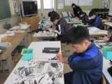 いよいよ水墨画を描き始めました。濃淡を工夫しながら筆を運んでいました。