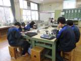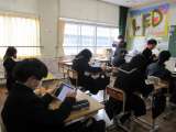 先日行われた公立高校入試の問題に挑戦しています。グループで解き方を考えていました...