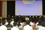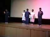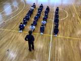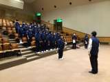 体育館で集団行動やキャンドルサービスでの出し物の練習をしました。