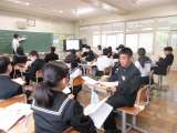 豊田市交通安全学習センターの方を講師に、1年生対象の交通安全教室を行いました。