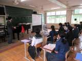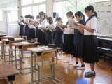 新しい教材曲を聴きながら口ずさんでいます。歌詞の意味を考えながら歌っている子もい...