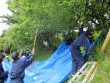 校内整備員さんと一緒に学校の梅を取っています。