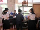 新曲のパート練習をしています。リズムや音程の難しいところを教えあっていました。