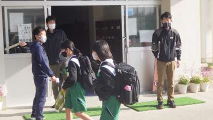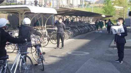 今日から学校での日常の生活がスタートしました。教員が至る場所に散らばり、自転車置き場や下駄箱の正確な場所を指導しました。とくに、1年生には通学路の確認も併せて行いました。どの生徒からも、「おはようございます」の元気な挨拶が聞かれ、新年度の抱負が強く感じられました。
