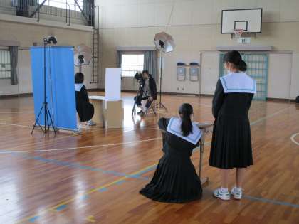 生徒手帳に使用する個人写真を撮影しました。全校生徒717名が一人ずつ撮っていきました。カメラレンズの先の表情は、どの生徒も素敵な笑顔で、新年度も頑張ろうという意欲が強く感じられました。