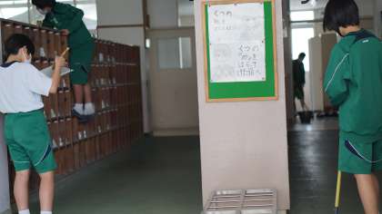 竜神中では毎日行われる清掃活動に、目標を掲げて、常に考えて取り組むことを大切にしています。2年生は1年生からの継続で「MSK清掃」を行っています。M:もくもく S:すみずみ K:きびきび を基礎とし、ときには清掃会議を取り入れるなどし、効率のよい清掃活動を目指しています。