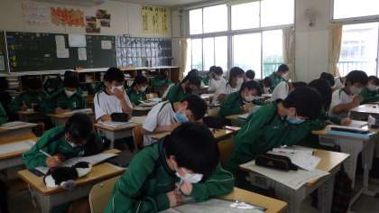 今日の6時間目は、「働くこと」について考えました。お金の価値を越えた働くことの意義を自分自身の言葉で発表しました。また、テストに向けて計画表を作成しました。具体的に数字を使って目標を立てました。最初の定期テストでよい結果を出そうという意気込みを感じました。