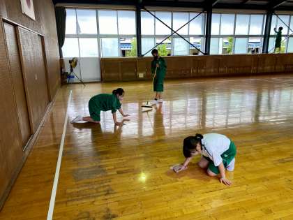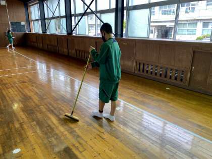 清掃の時間になると毎日一生懸命、清掃活動に取り組む姿が見られます。自分たちで考えた清掃活動計画書をもとに、挨拶の前には今日の目標、終わりには振り返りを生徒主体で行っています。10分間という時間の中でどのように活動したらよいかを毎日考えながら清掃に取り組んでいます。