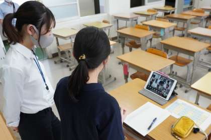 本日、全学年でオンライン学活を行いました。臨時休校等学校に登校できない場合を想定し、学校から学習用タブレットを持ち帰り、各ご家庭でタブレットを繋いでいただき、各クラスで学活を行いました。生徒の顔を担任の先生が確認できたり、先生が名前を呼ぶと返事をしたり、楽しそうな様子がいっぱい見られました。