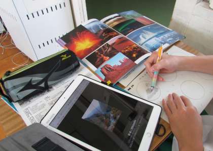 今は、タブレットや資料を使って自分のイメージに合ったものを探し、それを基に、複数のものを組み合わせたり、切り抜けるような形に単純化する作業をしています。