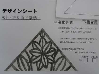 3年生の美術制作はずいぶんと進んできています。最終的に2案に絞られたデザインから、更にランプシェードとして仕上げる1案を選んで、実寸大の下描きシートに丁寧に描いています。夏休み前に業者に発注依頼できた進捗の早いクラスでは、カッティングが終わり、ニス塗りに進める状態になってきています。繊細で凝ったデザインに挑戦した生徒も多くいました。完成作品として展示されるのが楽しみです。