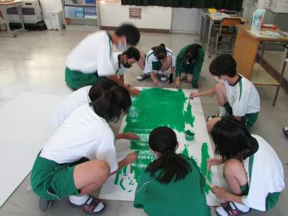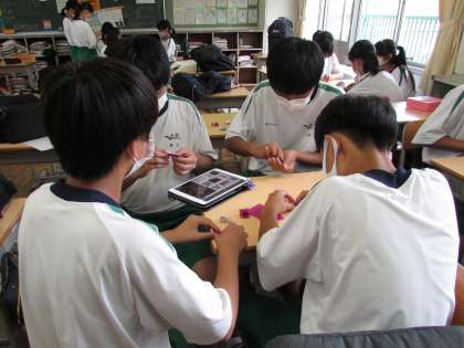 緊急事態宣言が解除され、延期となっていた行事が動き始めました。闘竜祭特別日課が本日から始まりました。気持ちのいい青空の下、早速運動場では、竜創結団の決起集会で団結力を高めたり、競技練習を行ったりしていました。教室では、パネルを彩るための飾りをタブレットで折り方を確認しながら作ったり、色を塗ったりしていました。