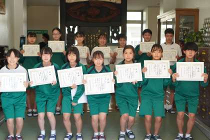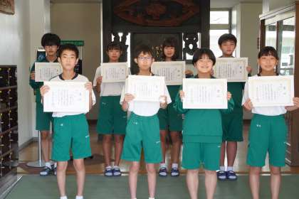 本日の表彰式の続きの記事です。1枚目の写真は、豊田市教育研究会作文・詩の部で表彰されたみなさんです。2枚目の写真は、豊田市教育研究会読書感想文の部で表彰されたみなさんです。3枚目の写真は、竜神コミュニティ主催の青少年健全育成のつどい作文で入選したみなさんです。表彰おめでとうございます。