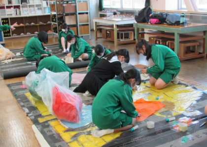 虹竜祭まであと1週間ほどです。ステンドグラス制作もいよいよ佳境に入っています。緊急事態宣言による闘竜祭延期での行事の重なりや秋の深まりによる日没の早さなどで、夏休み明けの部活動の時間が思うようにとれない中、美術部では、休日も返上して取り組んでいます。