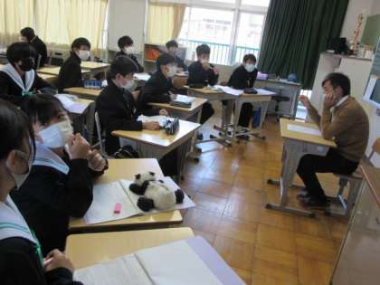 1年生が総合の時間に教師インタビューを行いました。1年生は、11月30日にキャリアチャレンジデイという様々な職業の方のお話を聞く行事を予定しています。その準備として、身近で働いている教師にインタビューを行いました。生徒からは「先生になった理由は。」「先生のやりがいは。」などの多くの質問をしている様子が見られました。