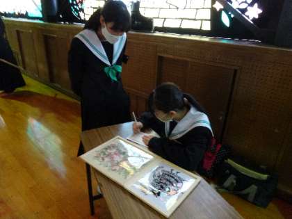 12月6日〜12月10日の期間に美術部、家庭科部、文化部、各学年の美術作品の展示があります。部活動の時間に、美術部、家庭科部、文化部の生徒が展示の準備をしています。絵やランプシェードなどの作品が展示される予定です。どんな作品がどのように展示されるのかとても楽しみです。