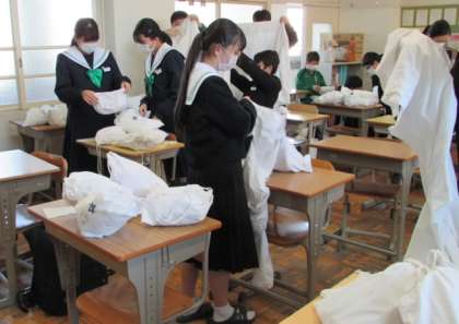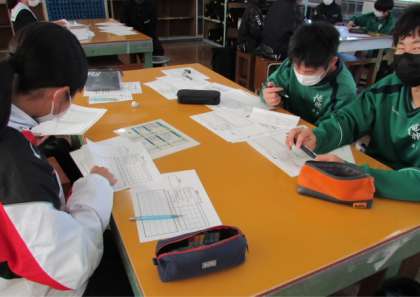 12月の委員会ということで、年末、年明けに向けて、その時期ならではの注意点の確認や準備などを各委員会とも行っていました。写真は、給食委員会のエプロンチェックの様子と美化委員会の年末大掃除の計画表の作成の様子、図書委員会の書き初め台紙の準備の様子です。委員会の皆さん、いつもありがとうございます。