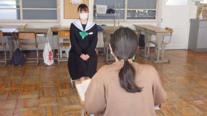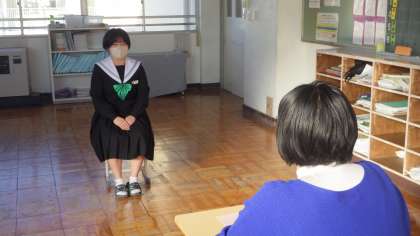 いよいよ3年生は進路決定の時期になりました。年が明け、様々な学校の入学試験がスタートしています。1月18日(火)から20日(木)までの3日間、「3年生の面接練習会」を実施しました。この取組は今年で3回目となります。これは、本校の保護者ボランティアの皆さんに面接官を務めていただき、1対1での面接練習をするものです。1月はとくに国立・私立専修学校・企業内学園を希望する生徒を対象に行いました。ボランティアの皆さんはのべ13名が参加し、練習に参加した生徒は71名でした。保護者ボランティアとしてご参加いただいた保護者の皆さん、ありがとうございました。