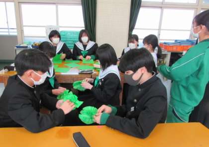 写真は、先週金曜日に2年生だけで行われた送る会の準備の様子です。1年生がいない中でも、2年生が黙々と作業を行ってました。