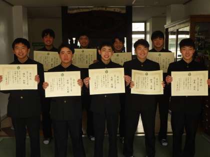 卒業式前日の今日、3年生が竜神中学校同窓会の入会式に参加しました。会の後半、同窓会表彰をはじめとする様々な表彰式がありました。表彰されたのは、義務教育9年間の皆出席者12名、体育的分野表彰においてクラブ選手権西三河大会準優勝の野球部のみなさん、チアリーディング&ダンス日本大会2位の野中さん、豊田南ライオンズクラブ善行表彰のつる田(雨かんむりに鶴)さんです。