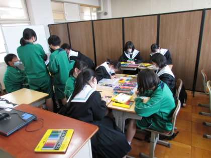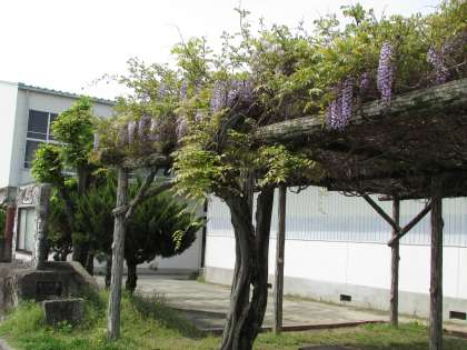 写真は、美術部のステンドグラス制作体験、文芸部の先輩の描いたイラストへの色付け体験です。また、幹が朽ちながらも今年も美しく咲き始めている藤棚も紹介します。