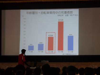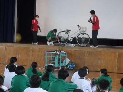 22日(金)5・6時間目に講師の方をお招きして自転車安全運転講習会が行われました。自転車点検の合い言葉は「ブ・タ・ハ・ト・シャ・ベル(ブレーキ・タイヤ・ハンドル・灯火・車体・ベル)」。今回は1年生が対象でしたが、2、3年生も安全に運転できるよう、この週末に自転車の点検を是非やってみてください。