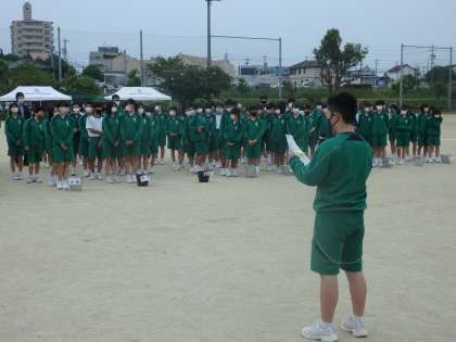 美化委員長の「こんなにたくさんの人が集まってくれて嬉しいです」という挨拶から始まった今朝のボランティア活動。23日の闘竜祭に向けて、グランドの石を拾うためにたくさんの生徒がボランティアとして参加しました。先週からの広報委員によるクラスアピールの放送や今日の美化委員による石拾いなど、学校全体で闘竜祭を成功させようと、多くの生徒が頑張っています。学級や団による競技練習もますます熱を帯びてきました。さあ、いよいよ来週月曜日は第50回闘竜祭。熱く燃える竜中生への温かいご声援をよろしくお願いいたします。
