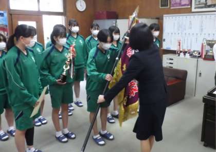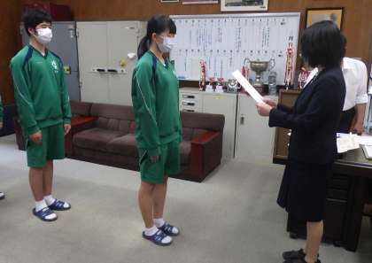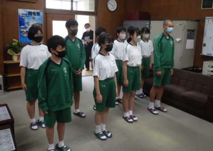 本日、前期委員会、学級委員、議員の認証式と部活動や昨日行われた闘竜祭の生徒会種目と団総合の表彰式が行われました。オンラインでの実施でしたが、生徒は教室でスクリーンを見ながら、仲間に拍手を送りました。また、闘竜祭の生徒会種目や団総合で3位までに入賞したクラスからは、大きな歓声があがりました。