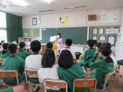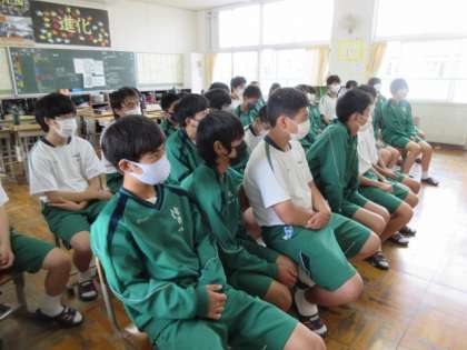 本日は、ボランティアによる読み聞かせの時間がありました。各教室に1名ずつ読み聞かせボランティアさんに入っていただき、様々な絵本や紙芝居などの読み聞かせを行っていただきました。時には笑いながら、時にはうなずきながら話を聞く生徒の様子が印象的でした。