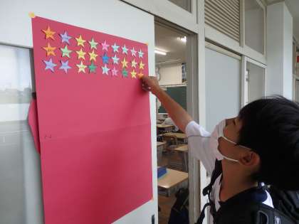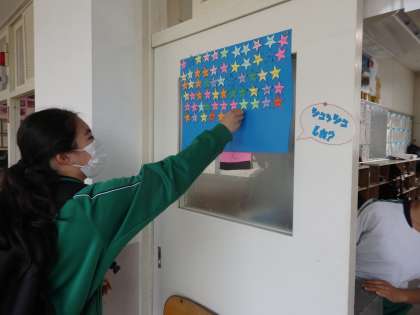 各教室の廊下に掲示されているクラスカラーの画用紙には、生徒会役員から受け取った星形のシールが貼られています。だんだんにぎやかになってきましたね。